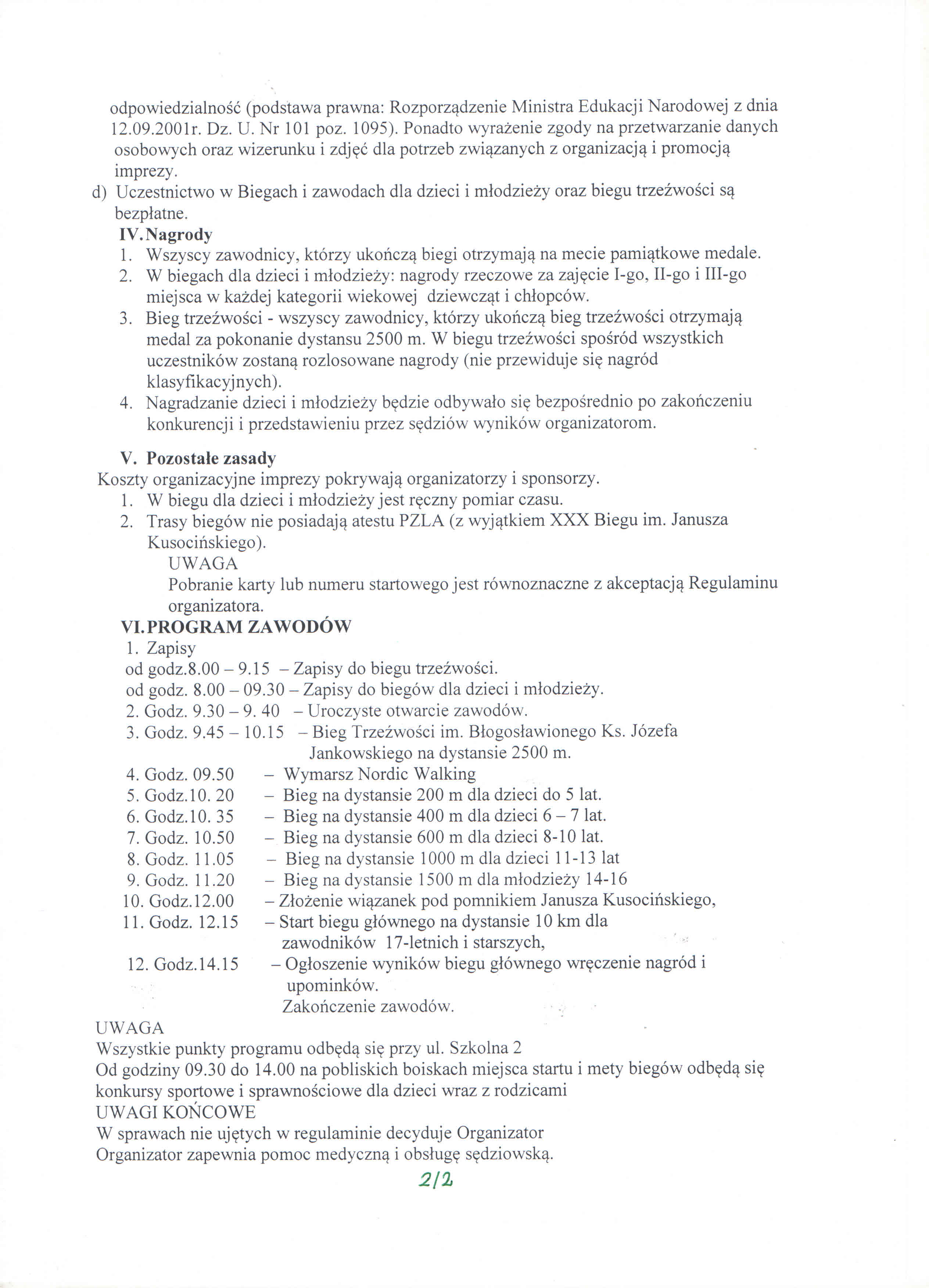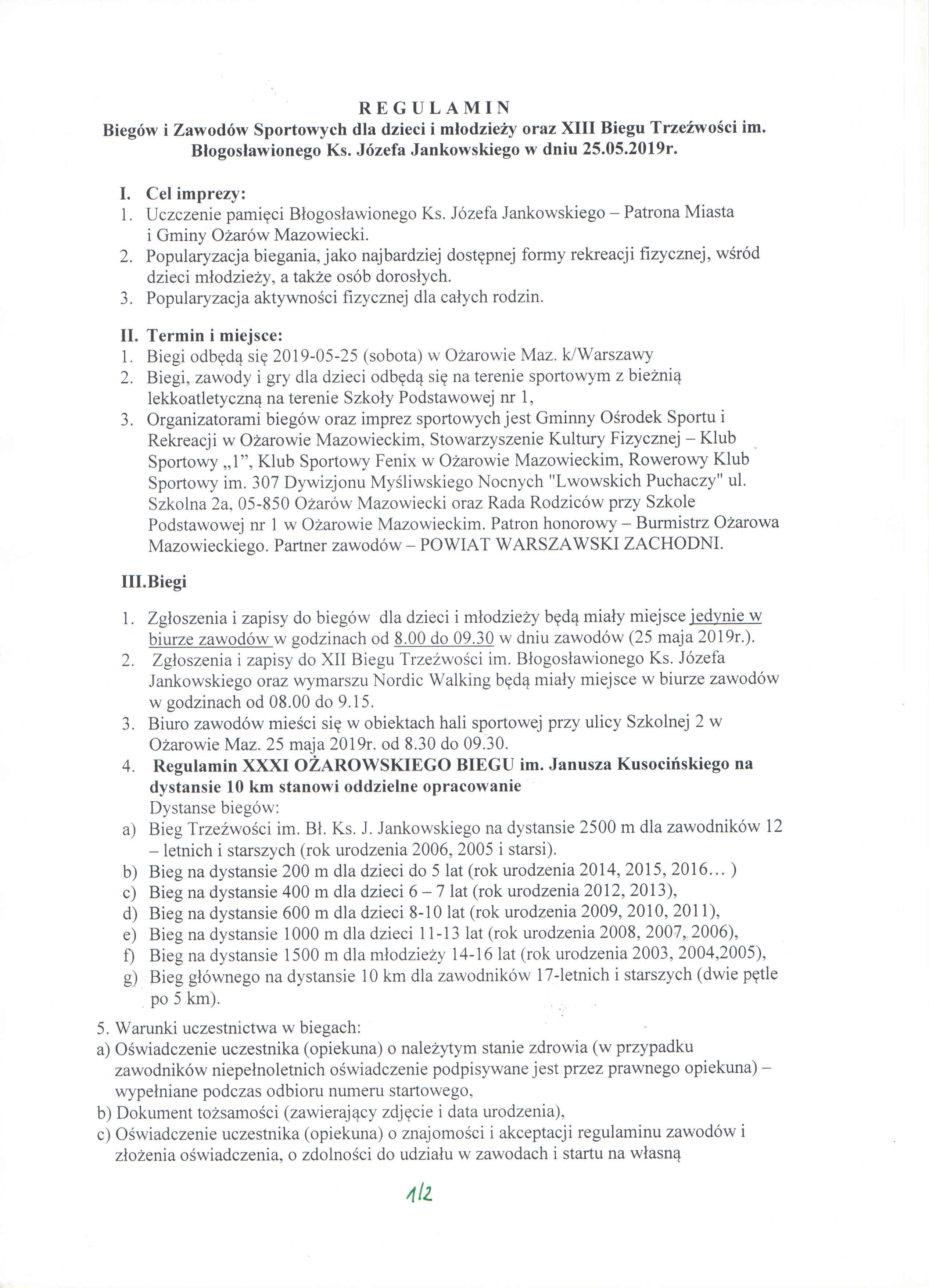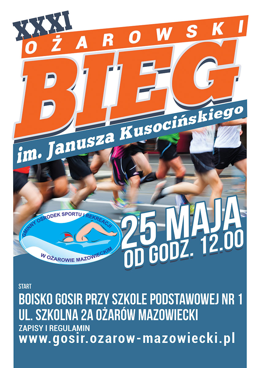 Zaproszenie na XXXI edycję Biegu Ożarowskiego im. Janusza Kusocińskiego.